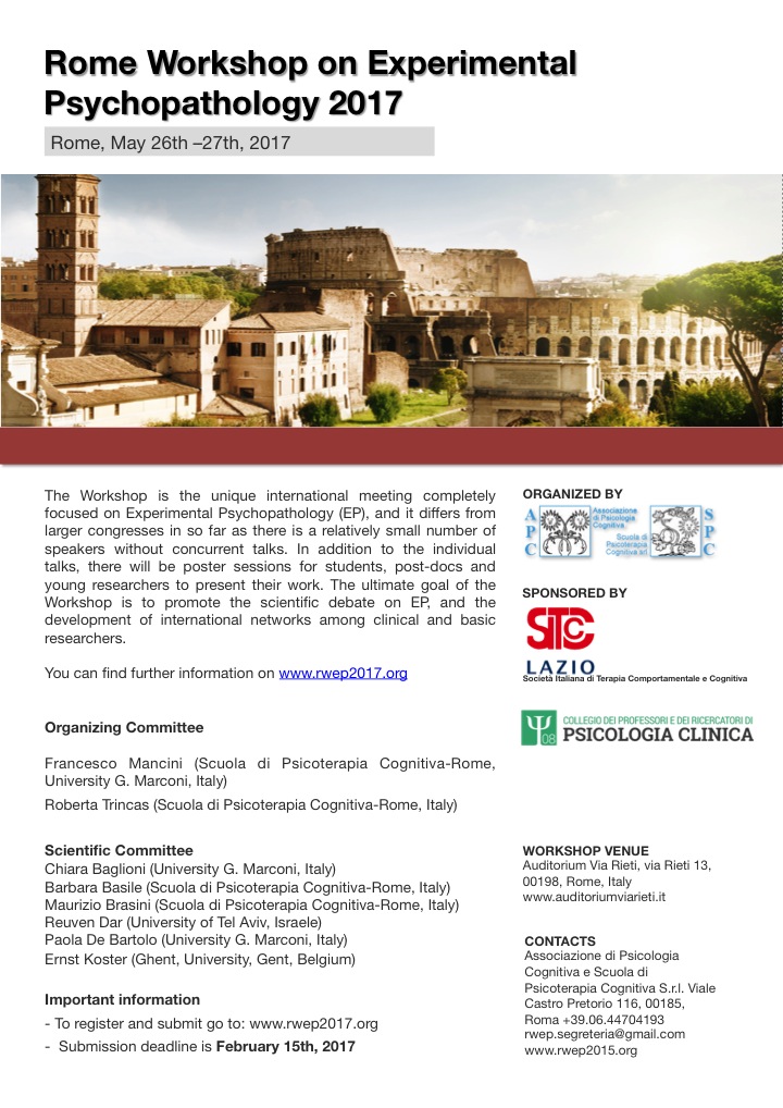 Workshop on Experimental Psychopathology – Verona 2021